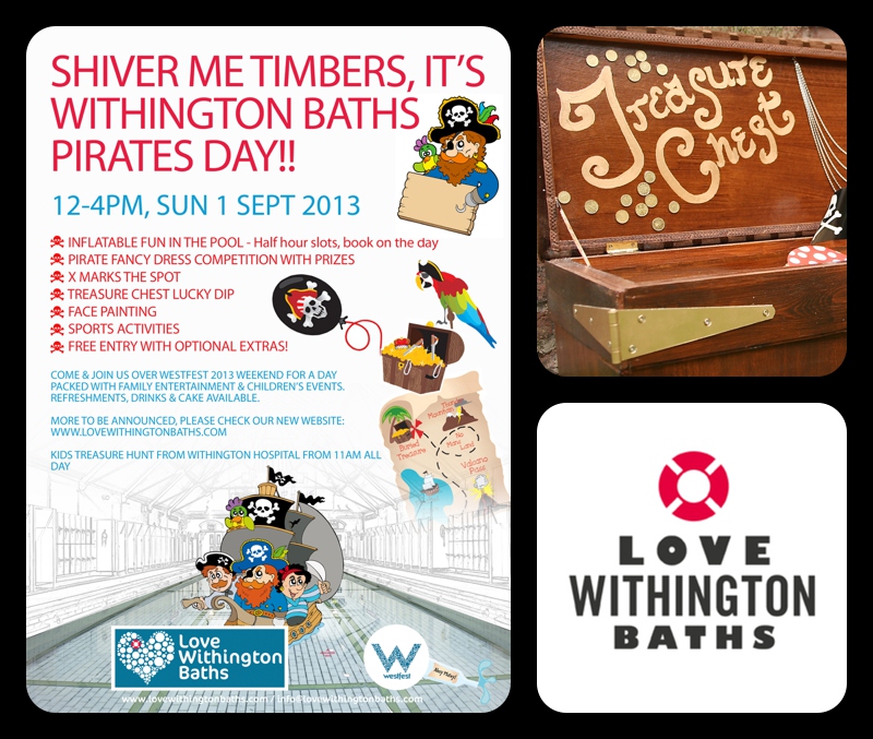 Now something for the kids! Sunday September 1st will see Withington Baths hosting a Pirate’s Day as part of West Didsbury’s WestFest, open to all from 12-4, with a Fancy Dress competition, children’s Treasure Hunt from the corner of Burton Road and Nell Lane (all day), the inflatable in the pool, sports training sessions, X Marks The Spot (with locally donated prizes) and a Treasure Chest Lucky Dip.