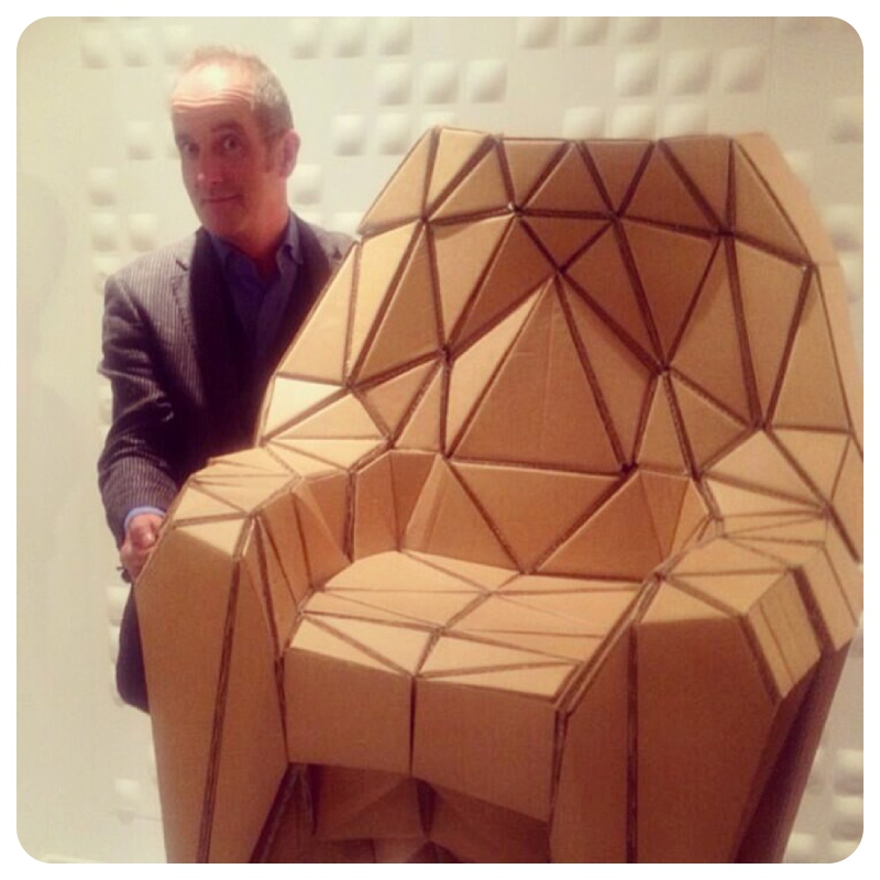 KevGod clearly liked the cardboard Bravais armchair, by Manchester’s Lazerian, judging by his expression of caught -in-the-act-fondling…. we liked it too 🙂