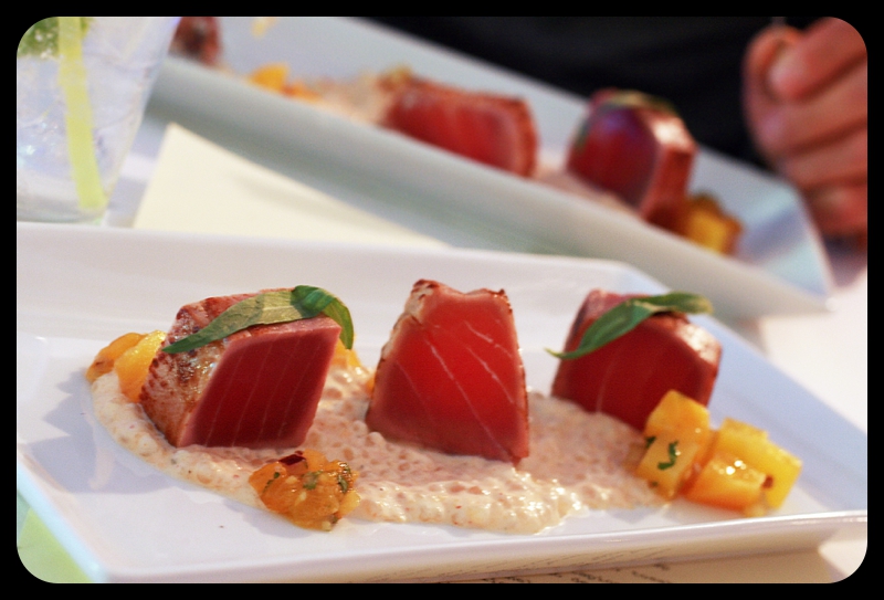 Pretty much my favourite dish of the night was the smoked ahi tuna which had been smoked that afternoon using a home smoking gun used with a foil sealed pan. It was utterly delicious with the kimchi tapioca pudding – check out this Independent article on the rise & rise of Korean ingredients. Coupled with the sweet earthiness of the yellow beet, it was a winner. At least two blokes near us were heard to be putting in their Santa’s list order for smoking guns.