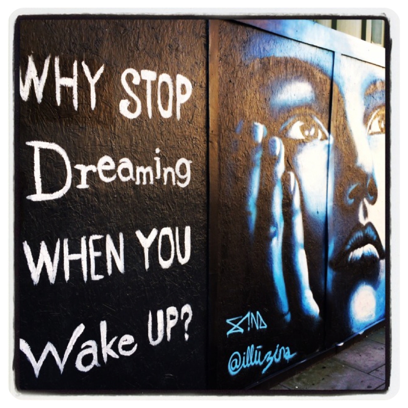Totally inspired by the beautiful building and the creative use it is put to for London and it’s different communities, everything from the visual arts, crafts, film, fashion, music and education. Lots of seeds being sewn for the future of our Love Withington Baths project, summed up by this graffiti I saw near Shoreditch….