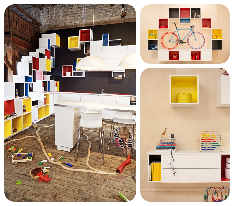 If dark & mysterious is more your thing, try mixing black traditional style doors with funky trompe l’oeil styling:New Metod kitchens in Ikea UK Bang on trend for 2014 with bare brickwork, copper accents and vivid blues:New Metod kitchens in Ikea UKA wider range of sizes means much more interesting cabinetry and storage design. Even if you need ladders to reach the pots đŸ˜‰New Metod kitchens in Ikea UK When is a kitchen not a kitchen? When it looks like a library, obv.New Metod kitchens in Ikea UK New mini drawers means a more streamlined life – get organise people!New Metod kitchens in Ikea UK Funky coloured boxes give another non-kitchen look. I’ve bough two of the charcoal ones, looking forward to seeing them up!