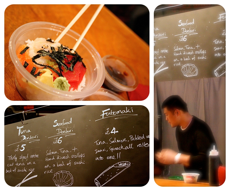 We resolved to work our way round the room ’til we popped or fell over and scored pretty highly. First up came Umezushi, a small and very highly rated by pals sushi bar. I enjoyed the seafood donburi, it was light & fresh, but was delicate sushi at this type of event a little incongruous, given it was competing with such big tastes & smells? Possibly. I didn’t like the idea of throwing all those thick plastic pots aways either, felt a little wrong. May have been better with fresh fish being sliced in situ, a more foodie experience to draw in the crowds.