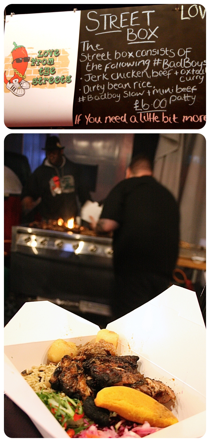 One of our two stars of the night was the LoveFromTheStreets stand, long queues for the full 3hrs we were there, with great portions of tasty Caribbean delights for the prices charged. The Jerk chicken was finger lickin good with juicy ‘slaw and soak it up rice. Spot on.