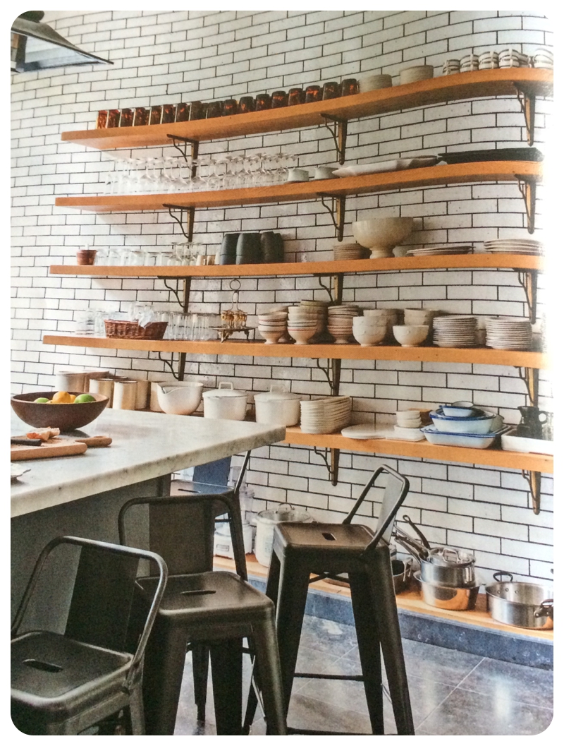 Subway tiles can look stunning when used floor to ceiling as in the images below and I really like the use of huge feature shelving in kitchens – be careful when drilling with this one.