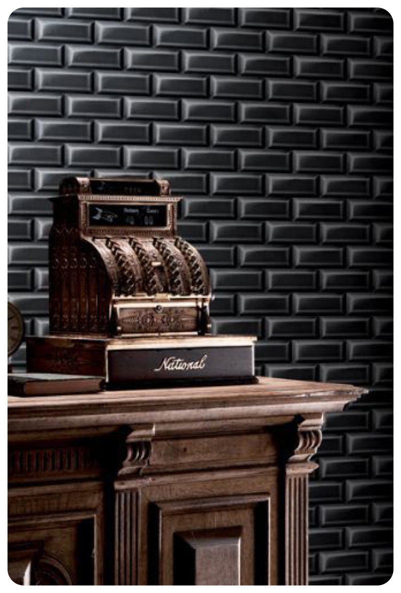 Of course if you don’t want to use actual tiles for style, practicality or cost reasons, you could always pretend as in this rather fabulous Warsaw cafe pinned by @totmac, or the stunning Metro tile wallpaper: