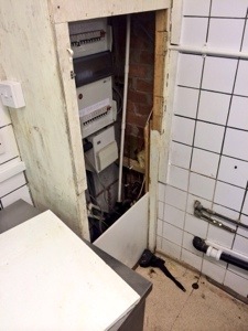 Like nails punching through mains pressure water pipes by previous workmen which Mr M got VERY wet fixing: