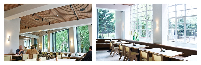 Visiting stylish restaurants is a constant source of interiors inspiration and a way of keeping your eye on the latest trends as often the very cream of design experts are called in to help create a unique feel for new eateries. Whilst working our way around design venues at Clerkenwell Design Week, we called into Aussie restauranteur & food writer Bill Granger‘s place Granger & Co for a late lunch and loved it. Light & airy up on the first floor of the imposing Middlesex House on Clerkenwell Green, it has huge windows looking out to tall leafy trees and doesn’t actually feel like London at all.