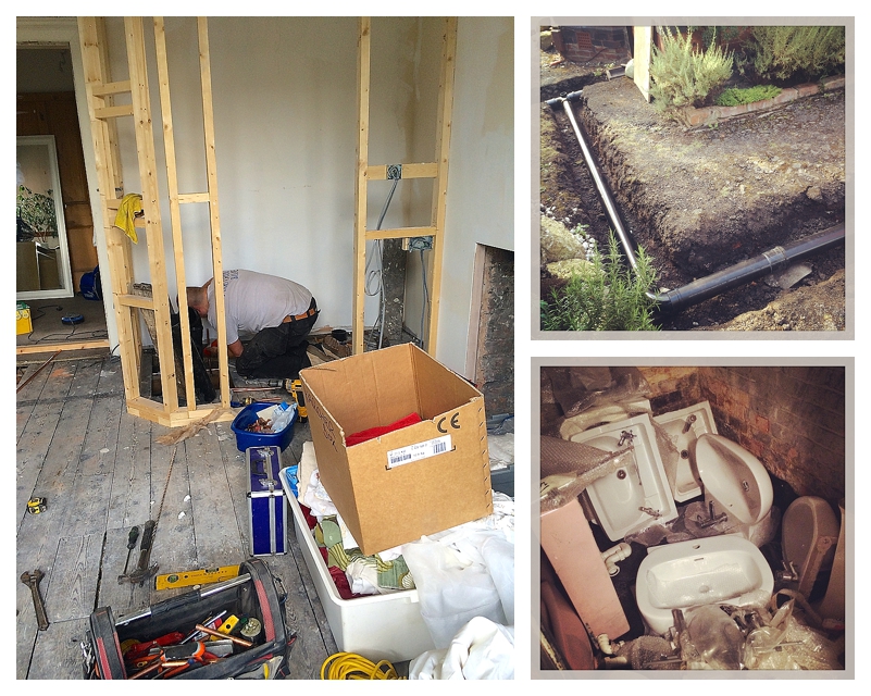 Mr M got digging outside and our garden pathway turned into a death-trap but hey hey, we found an existing pipe we could connect into temporarily. It’s a mixed water system so it’s all good and means we don’t have to have have a saniflow or hire a portaloo, can you *even* imagine sharing a loo with six burly builders for four months? I can’t believe I Instagrammed some soil pipe yesterday, that’s gotta be a first on there surely, but I was SO happy!