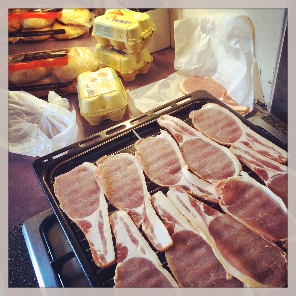 I’ve just cooked my *first batch of bacon butties to give the boys a much needed boost as they strip off all the decorative slate, battens and old felt in the driving rain. The slates will be saved for re-use and new breathable membrane used when the whole wing is reconstructed. It’s actually happening, after all these years, I can’t quite believe it!!