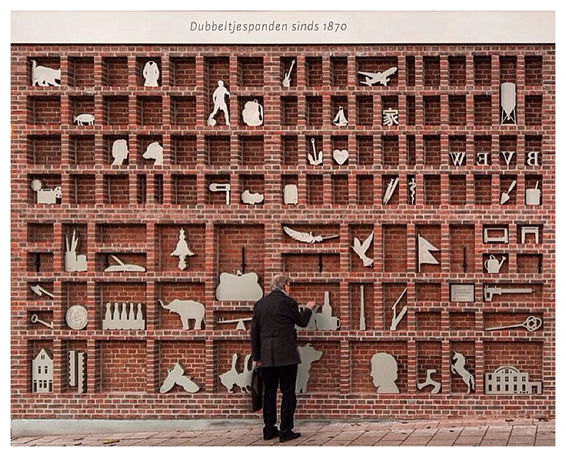How amazing is it? Designed by Dutch designers Studio Wessels Boer and installed onto the side elevation of a Dime House in Amsterdam, this wall / art project showcases aluminium silhouette objects which typify life in the immediate location with objects suggested by local residents. The whole wall looks like a type case for print and I thinks it’s absolutely spectacular. And I wanted one in my garden, right here: