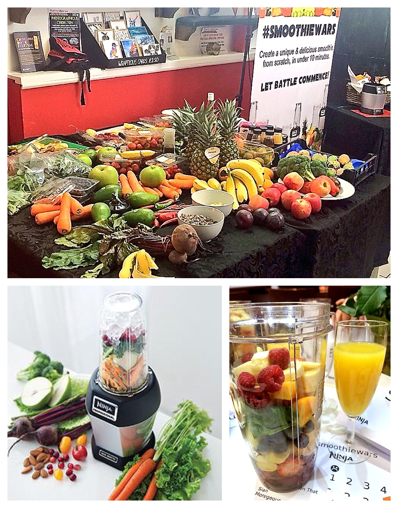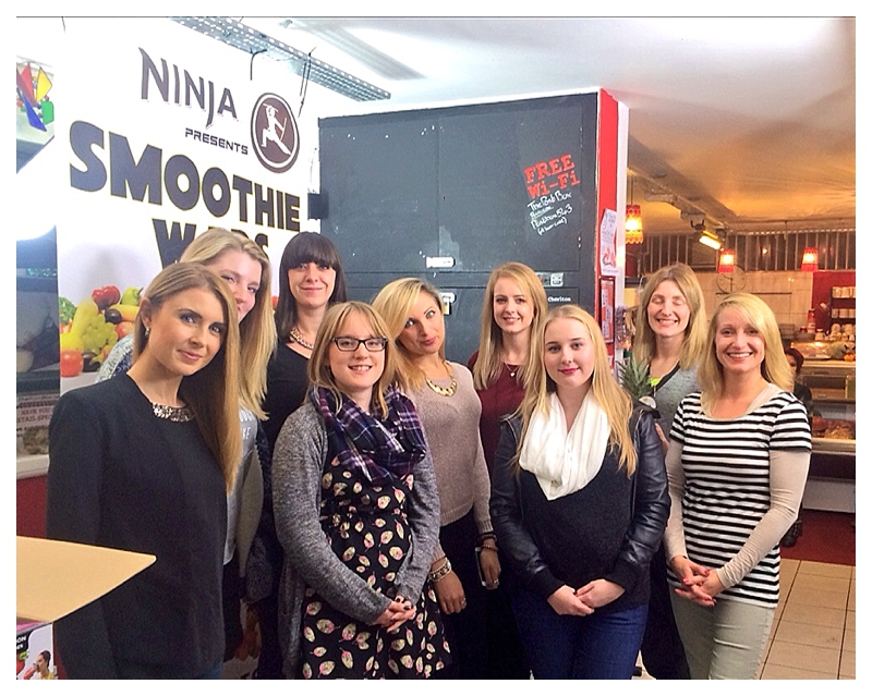 Nine bloggers went smoothie to smoothie last night in the very cute indie The Post Box Cafe in Chorlton, raiding a huge table laden with fruit and veg, packing our Ninjas, setting them to a 49sec blitz then comparing and marking each others to find the Supreme Smoothie Sorceress. The Ninja was described as compact but powerful, so we clearly have a lot in common 😉 Of all nine juices, only one person went for green, all the rest were varying shades of pink and purple.