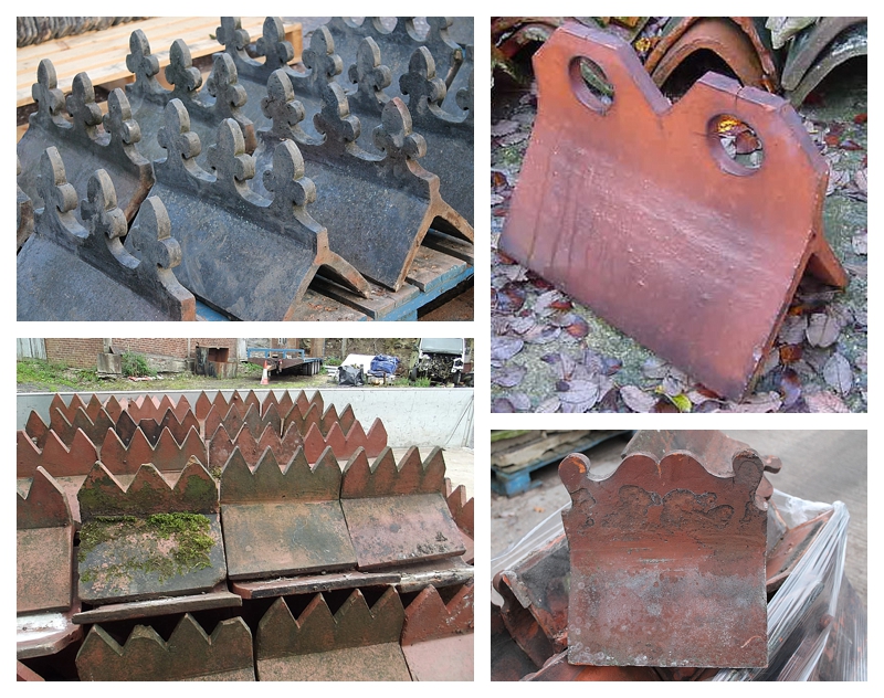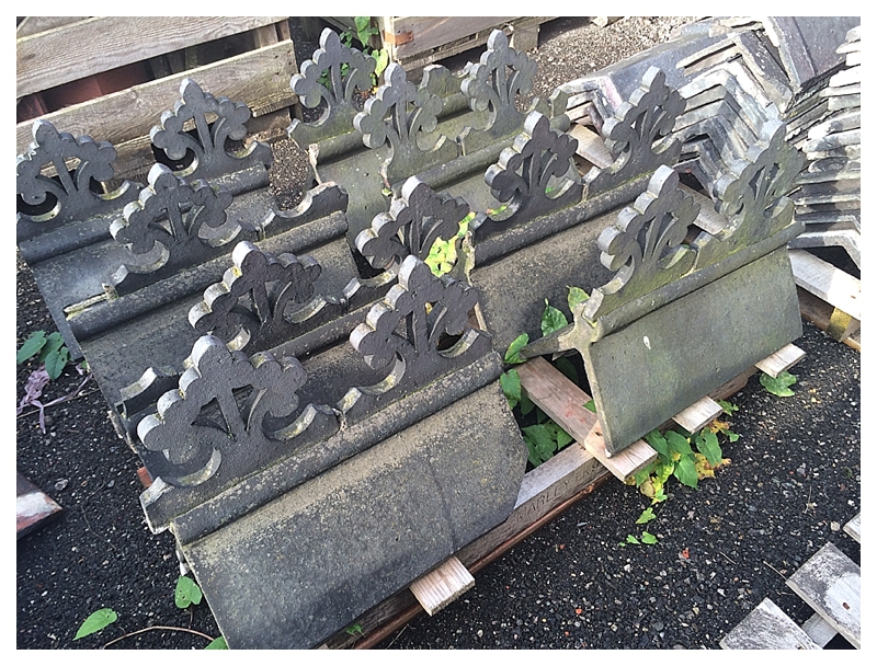 I can’t tell you how much I was tempted by these ones below I saw at one of the yards. How gorgeous are they? So expensive in comparison to our original blue collared ones though and also there were only these eight somewhat damaged ones left. They’re so pretty, I’m still wondering what they looked like on their original roof. They simply don’t make such decorative roofing products for ‘normal’ houses now, how sad that it doesn’t exist anymore.