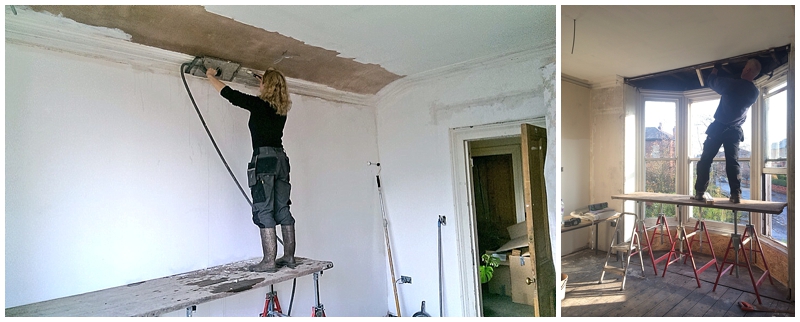 The sole room amidst the chaos of our renovation to be anywhere near ready is the one which will eventually be our guest bedroom. It was stripped back to brick months ago and re-plastered using insulated boards, plus had the ceiling re-skimmed and lots of insulation packed into the loft void all ready for us to move into it but we’ve only just got round to doing so… just in time as the temperature outside hits December levels! Up to Saturday it had no electrics, no curtains up at the rickety old windows, no carpet and the only household loo sitting forlornly amidst un-boarded stud work waiting for an en-suite shower room to be formed. We just haven’t got round to making it liveable as there’s been so much else to do but our hands were forced this week as the lads are about to start knocking the main house apart, including the bedroom we’ve slept in for the last eight years.