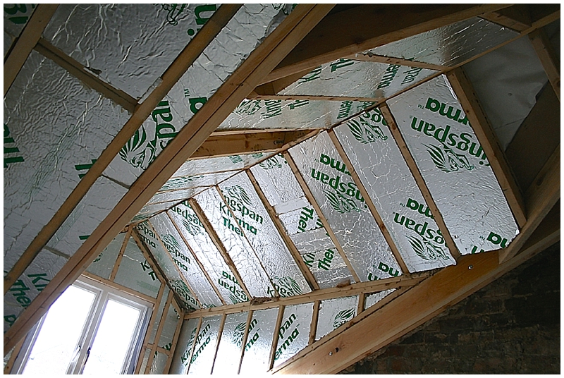 You might think what’s the point, but honestly, when you’re balanced on trestles measuring a ceiling gap or space between two rafters, this neat little buy is so handy. It’s made our fitting of many, many cuts of Kinsgspan a whole lot easier. This is just one of the dormers below and these are the simple bits, fairly straight and uniform, we’ve got a whole loads of triangles and jigsaw like pieces to work out yet!