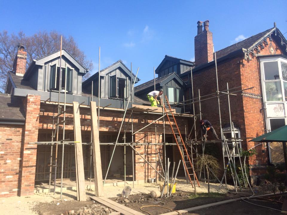 After many months of hard work, slog and toil, something huge has happened for us in this last week. Not only are all the dormers water-tight, sealed, guttered and clad in ColorCoat Urban, but the scaffolding has finally been taken down and reveals for the first time what’s actually been built! Until the moment the steel spiders web was finally gone, I’m not sure I’d fully appreciated how much I’d love it, but love it I do, and Mr M does too. He still can’t quite believe there are going to be five huge glass doors in that great big hole still in our house, and another two over to the right 🙂