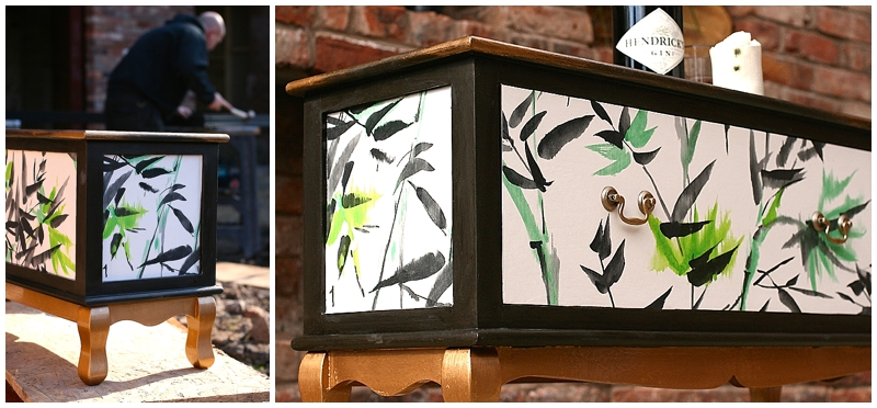 Thank heavens for the fast drying and wonderful Annie Sloan Graphite chalk paint used and also the spectacular Designers Guild Bamboo Lime wallpaper. I think I’ll be using both again as I start the design ‘proper’ of the interior here now our bifolds are in.