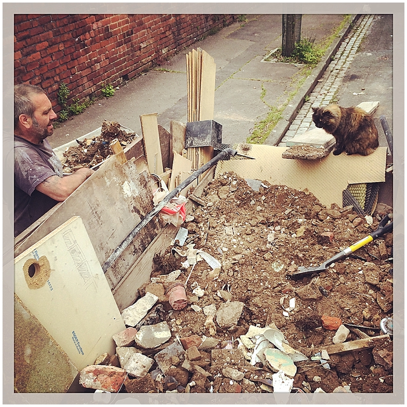 Missy Builder Cat, as usual, was a great help, guarding the skip to ensure no passing cheeky beggar put any sofas in it as we worked šŸ˜‰