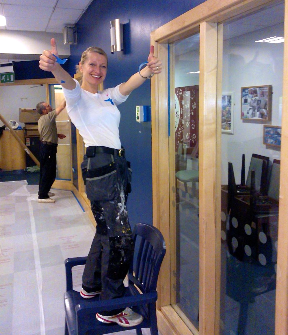 Three days, including all scrubbing, cleaning, undercoating and black to white edging on a 20m by 10m room using only volunteers? We smashed it!