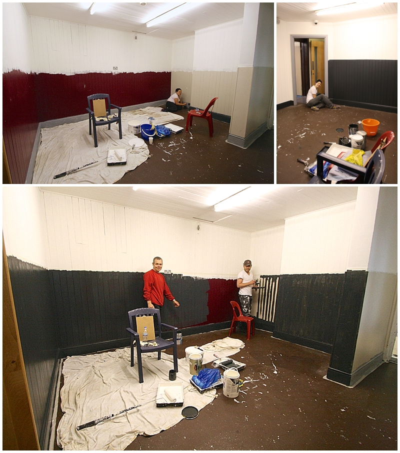 With the new gym almost completed and WOWING our gym bunnies, we’ve moved the Withington Baths makeover into our mini refreshments area. Eventually the 70’s style sauna style cladding will be stripped back to expose the original wall, coving and features behind but for now a very quick fix was needed.