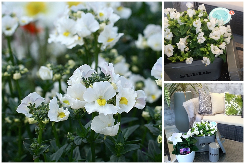 There are way too many sumptuous snowy florals out there to mention, many of them hardy enough for British winters bursting into flower even in our wet summers – ask for advice in your local garden centre. For a pretty English garden look avoid anything spiky or too oriental looking. Try Iceberg roses, Vanilla Nemesia, Queen Anne’s Lace, scented Jasmines, Clematis, and don’t forget many shrubs have beautiful white flowers too, such as the Spirea we chose. You could be flowering from the January snowdrops well into Autumn!