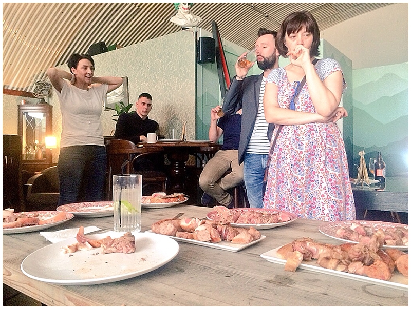 Hell yes, like a shot! And so head to head went North Yorkshire farm & rare breed specialists Taste Tradition, new to Manchester independent NQ outlet Butcher’s Quarter and Chorlton butchery bad boys Frost’s, supplier to many local restaurants. A selection of judges, including the entrants (given strict instructions to play fair!), gave marks out of ten to all four rounds and one judge in particular took it very seriously indeed, see below, with little talking and much notation. I’m not sure the butchers present approved of my meat hacking skills but hey, considering I was cutting, hosting and ensuring everyone scored the right plates from the right butchers, I didn’t do half bad!