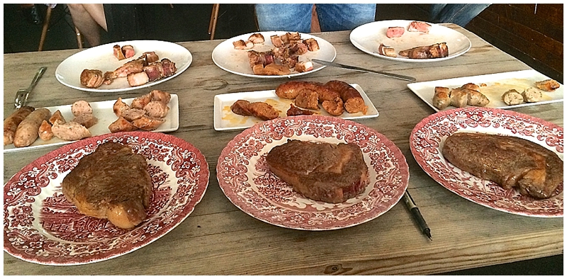 Not content with three superb specialities, there were then three more courses from each competitor: seared, pink & plump lamp chops, their own choice of homemade sausage and a 28 day hung rib-eye steak.
