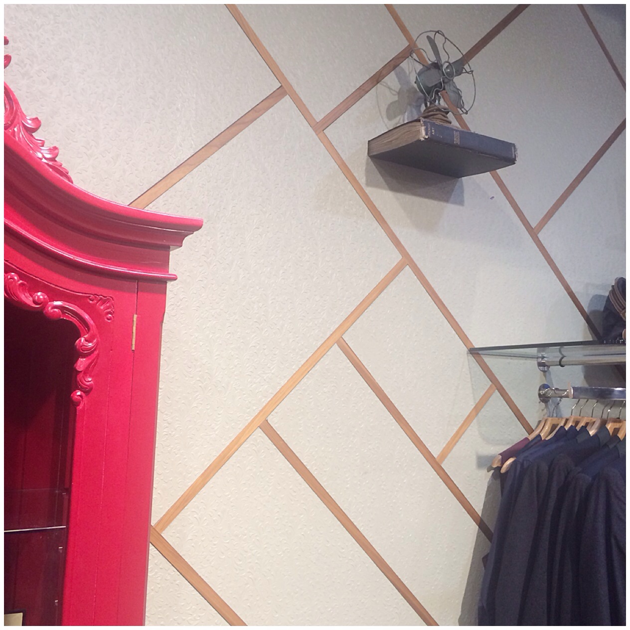 I also liked the feature wall panelled on the bias with timber strips, then in filled with different sized pieces of the same wallpaper. Interesting and taps into the geometric trend for 2016.