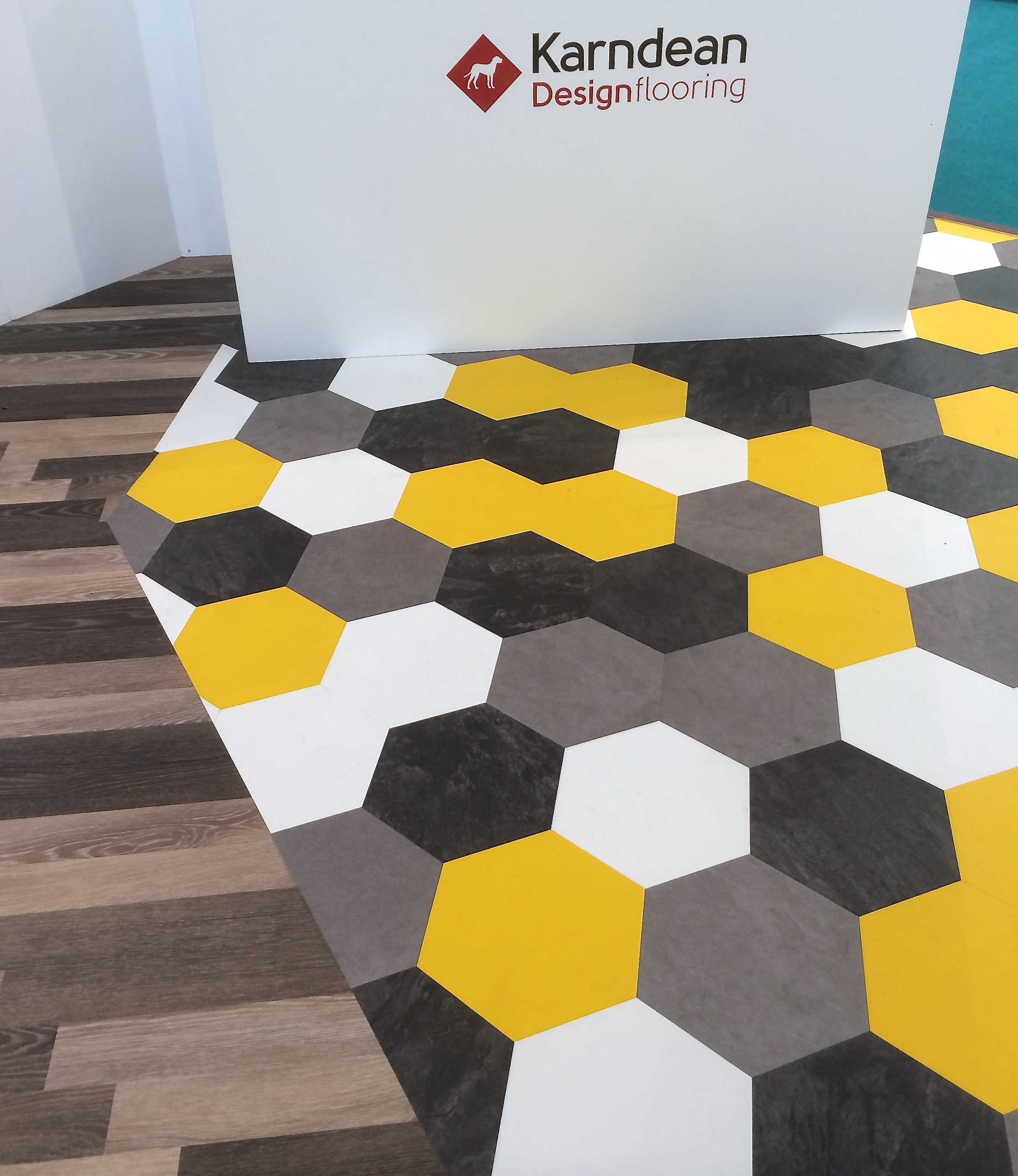 At 100% Design 2015, I spotted innovations in vinyl tiling on the Karndean stand, a company not previously thought of as particularly design led and thus a clear indicator that the market is getting more adventurous. This would have looked better if the timber vinyl planks had been cut around the hexagons….