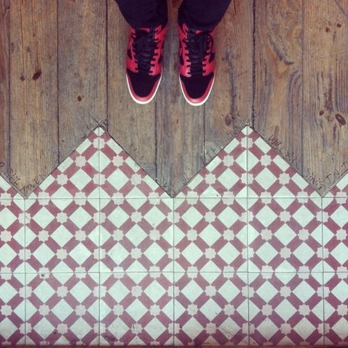 Even more complicated but even more stunning is the combination of tile and timber in a pattern where the planks need to be cut to fit a hexagon tile. I saw this Paulo Navone floor above about two years ago and just fell in love with it, utterly spectacular. Lots of hard work this one, and if you’re not DIY tile savvy, you’d better have deep pockets.