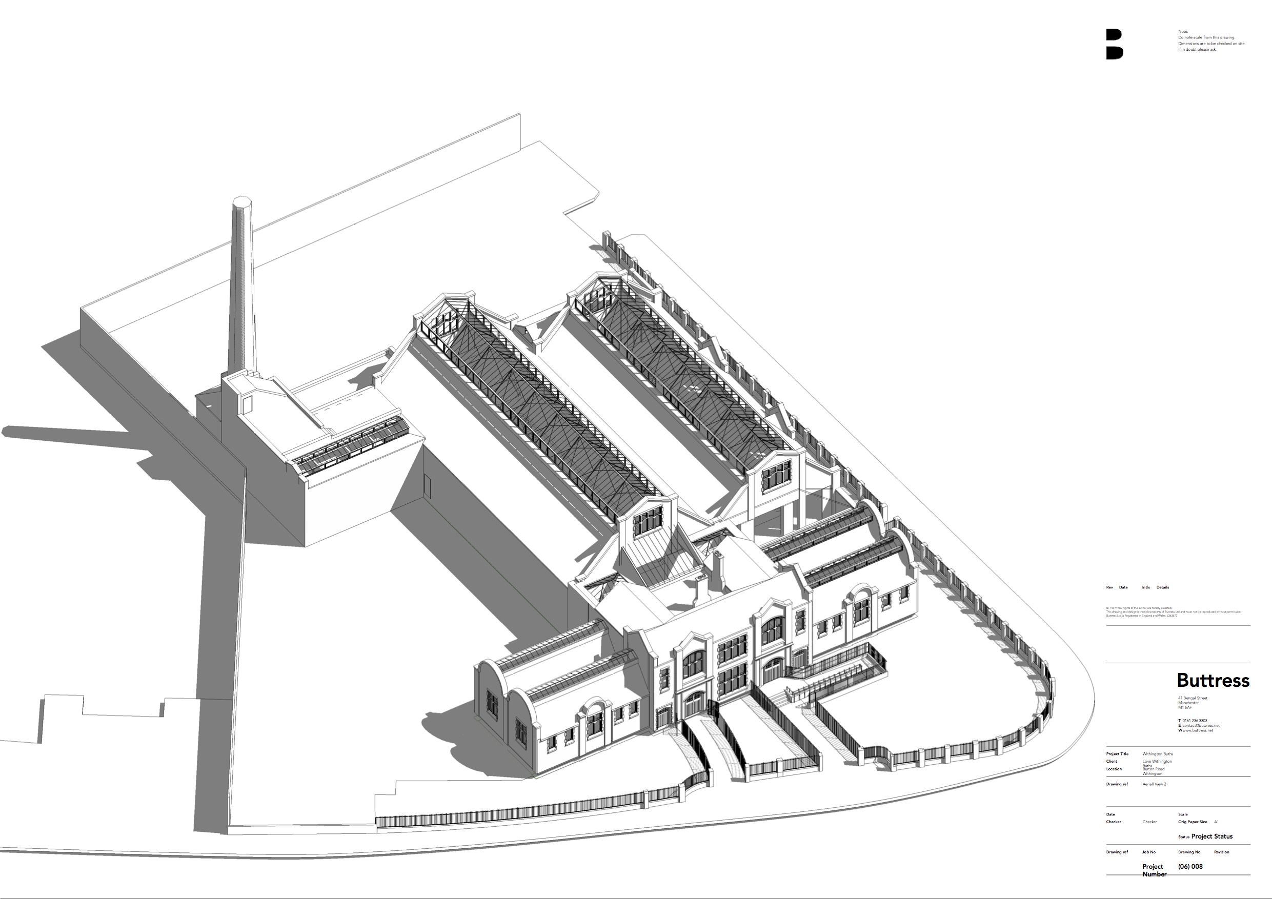 Now look at this and you get an idea of the scale of what we’ve taken on. This is a still from the BIM survey done which shows that front elevation along the bottom. Stretches back a bit, huh? And all of it needs work. Literally, all of it.