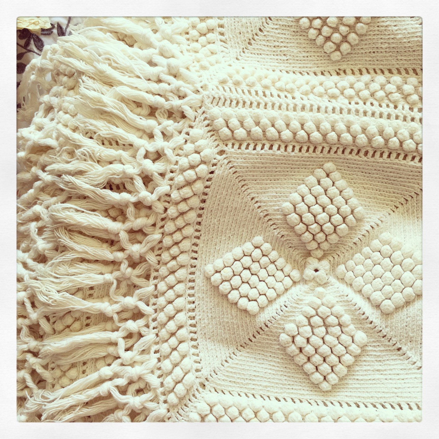 To complement our new bedroom chandeliers, I even found a stunning 100% cotton antique French bed throw with small circular bobbles just like the beads of my lighting – perfect!