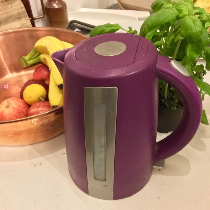 The house is coming on in leaps and bounds! As winter sets in properly, thank goodness we have actual hot water running from a tap for the first time in 2yrs, or is it longer since the old boiler broke? Anyhow it’s bloody amazing to wash my face in steaming water, even if we do still only have one sink and it’s in the coldest room in the house… the one which is still waiting for the second new bay to be installed and currently has a six foot hole in it. In December. As much as I revel in water about 5*C, the one working hot tap is over a tiny sink so we’re still boiling water in a kettle to wash up. I worked out that this cheapo purple kettle has been boiled over 12,000 times and has outlasted many more expensive back up kettles. It’s a superstar kettle and well deserves it’s Monday Moment, thank you Sainsburys 😉