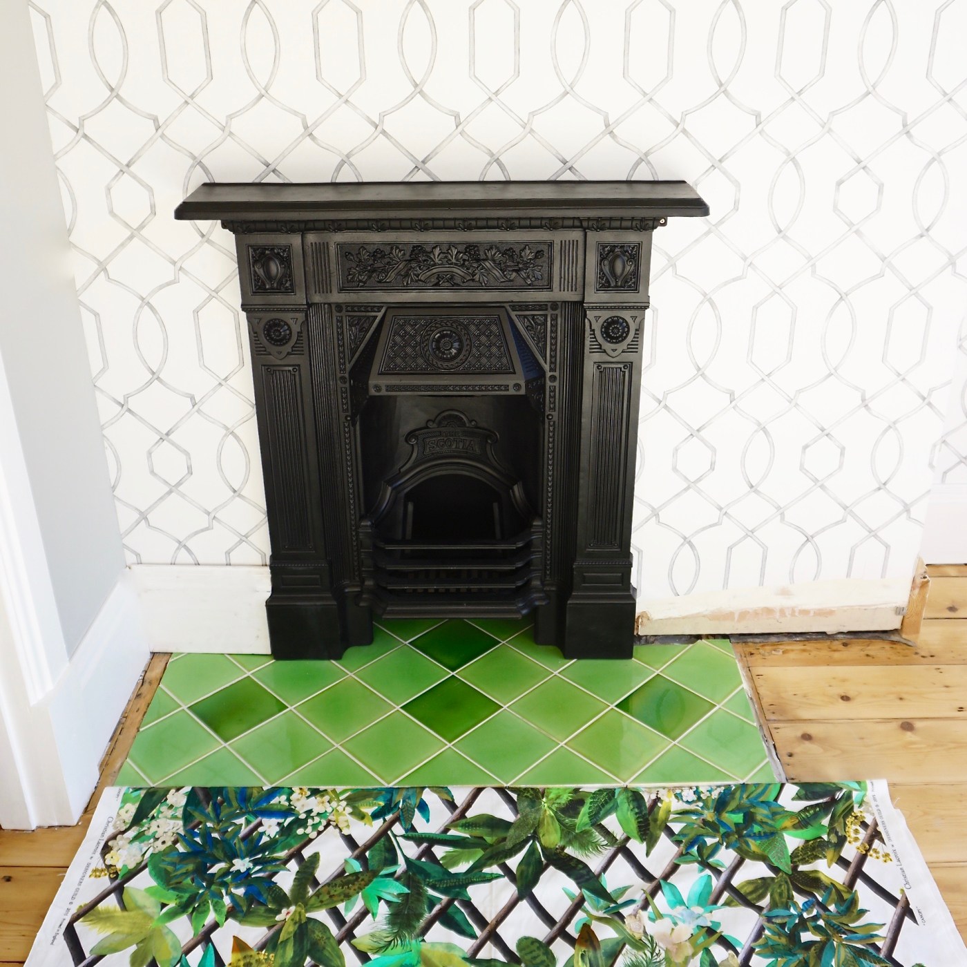 However, amongst all the changes, I couldn’t find it in my heart to love the hearth with its existing yellow and red patterned tiles. May the restoration lighting strike me down, I actively didn’t like them in the room. They had to go. It’s quite traumatic to take out original features but please can I reassure you that they’re totally undamaged and will be reused elsewhere. The guilt isn’t weighing too heavily.