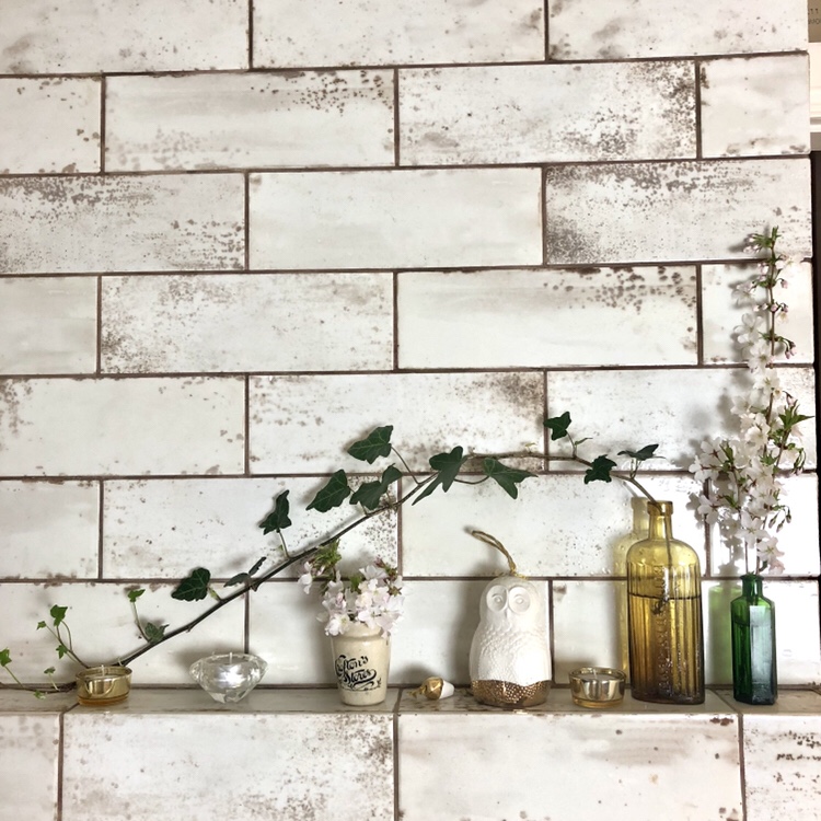 They’re textured and slightly industrial, warmer in tone than plain white so less reminiscent of a trendy coffee-shop and just reminded me so much of those beautiful ceramic brick walled butcher or fishmongers you used to see. The subway style allowed me to make floating shelves which from a distance makes it looks like the items on the shelves are hovering in mid air, especially at night. There’d have been slightly more marital bliss had I not wanted to add in another shelf after the whole thing was finished and grouted, but it’s a woman prerogative to change her mind right? Or so I keep telling him. I kept telling him it as he smashed out six perfectly fitted tiles to insert the shelf above.