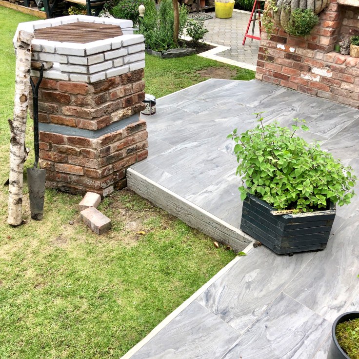 Long time readers saw the stack of bricks and slates from our demolition and all useable reclaimed materials being salvaged and used in our build. Once the extension was complete, we didn’t simply skip everything though. All the left over bricks were piled neatly in a corner of the garden and have been used to create seating and mini walls as the garden has progressed. Likewise with bits of timber or ply, unless they’re really too small or misshapen to be used, they’re leaned up and covered, awaiting their own adventure.