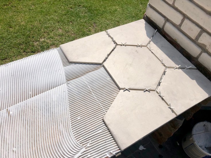 Of course – the hexagons had been laid the ‘wrong’ way. I flipped them so the flat edge mirrored the barbecue shape. This also meant less fiddly cuts at either end – bonus!
