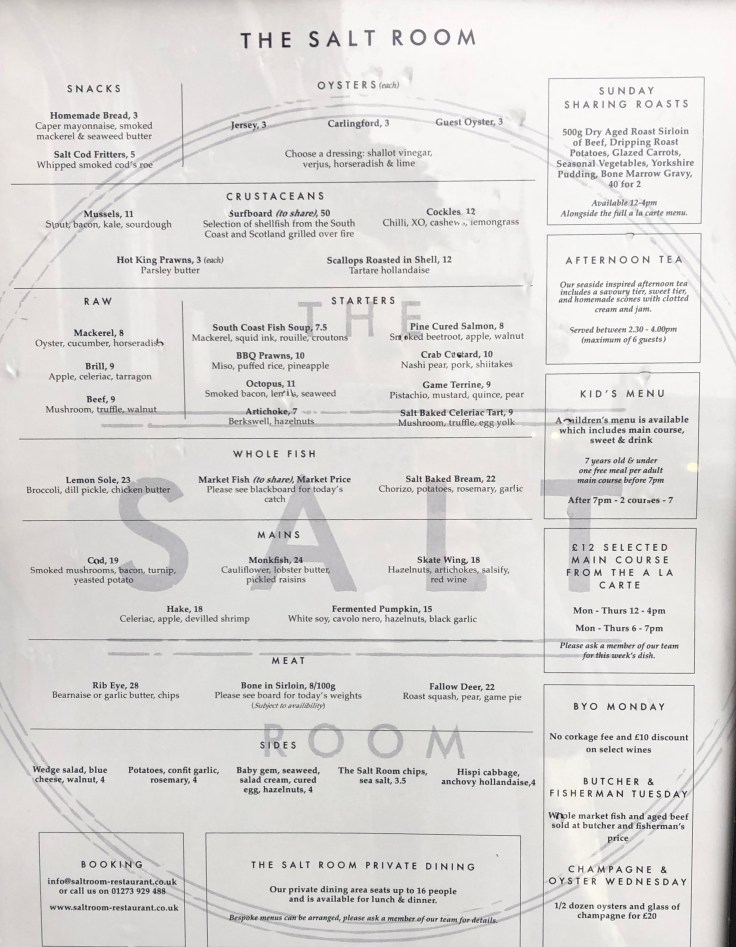 Bloody right we are. After two days of motorway sarnies and late night half price Itsu, The Salt Room Brighton rises up before us through the mist and practically demands to be on the Si’s Seafood Tour list of UK platters ticked.