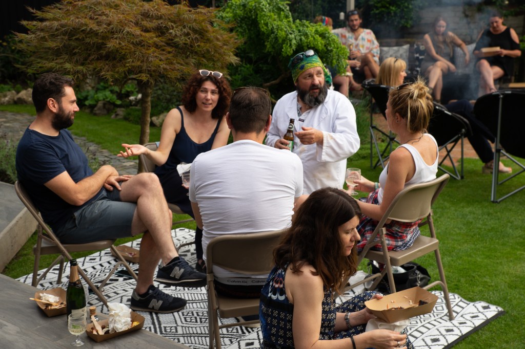 When guests arrive, welcome cocktails are ready. In August liberal measures of vodka on ice rocked the Moregeous garden treatment of freshly grown in Manchester lemon, fizzy lemonade and homegrown sprigs of verbena. It doesn’t take much for people to feel relaxed here and guests soon bag their spots either under the vine, next to the firepit, on the terrace or across the lawn, cracking open the BYO. Pete expertly and smoothly serves up the perfectly cooked meats, alongside salads, ‘slaws, flatbreads and homemade sauces. I’m pretty sure most people go back for thirds. Which is totally allowed. In fact, positively encouraged.