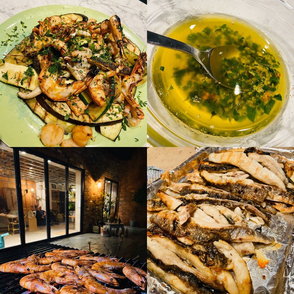 The crab ravioli starter looked completely delicious and I think everyone enjoyed it, however as I was the ejjit stood outside IN FEBRUARY chargrilling all the seafood and veg, I’ll have to take your words for it 😉 With poor Mr M still recovering from his leg operation (tibial osteotomy FYI), yours truly was on grill duty and will be eternally grateful for no rain that night. There are zero photos of me shivering and flipping so clearly it didn’t really happen. My extremities knew it happened. Bit of me were blue. Actually, I think you probably can guess that I secretly loved every minute of it, though will put WAY more charcoal on next time. You live and learn.