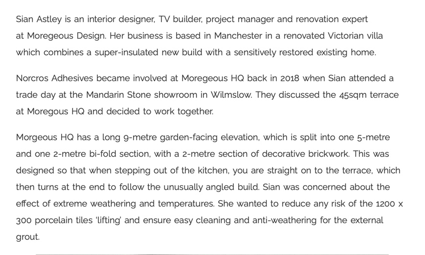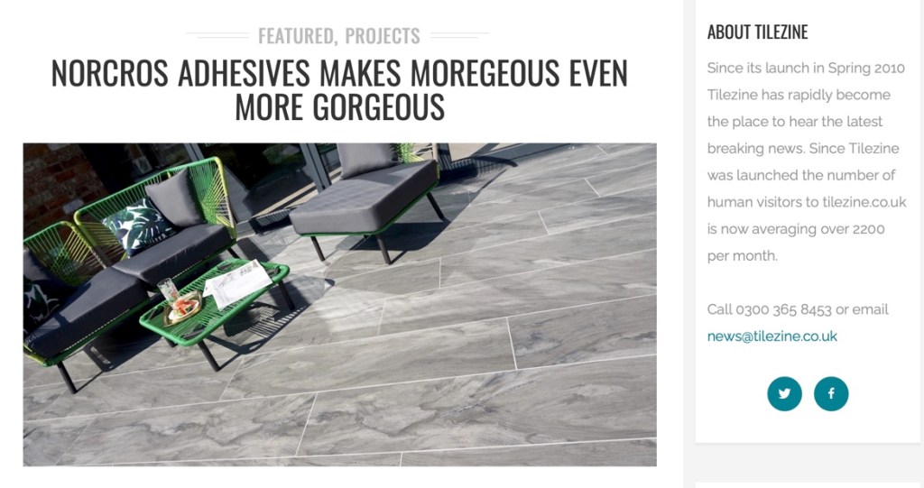 I’d like to think that tiling industry news bringer Tilezine have featured our terrace as it looks so damn fiiiiiine but it’s more likely they like the fact that several products were live tested and Norcros is a well respected player in their industry.