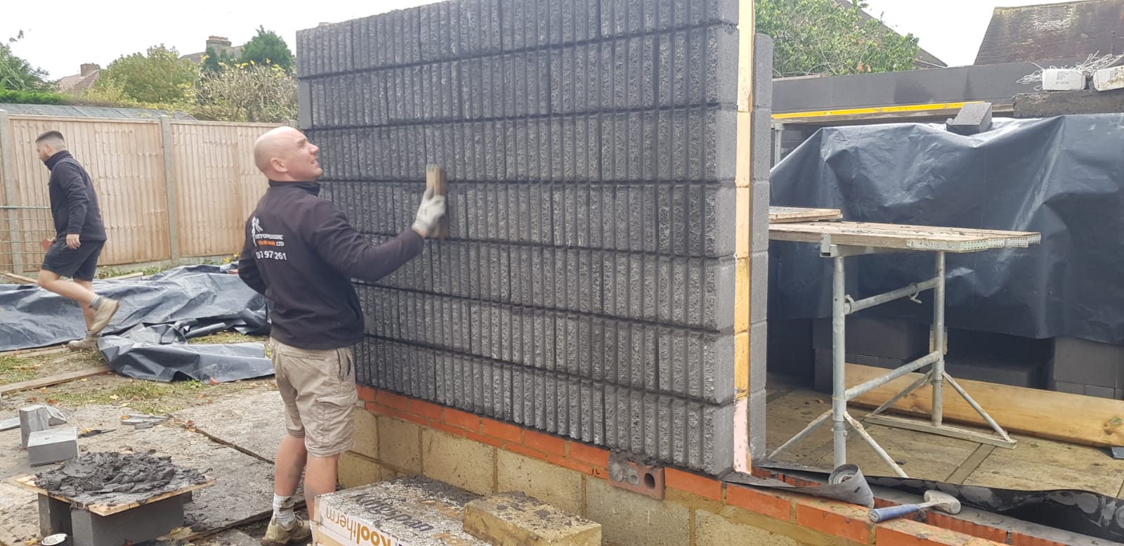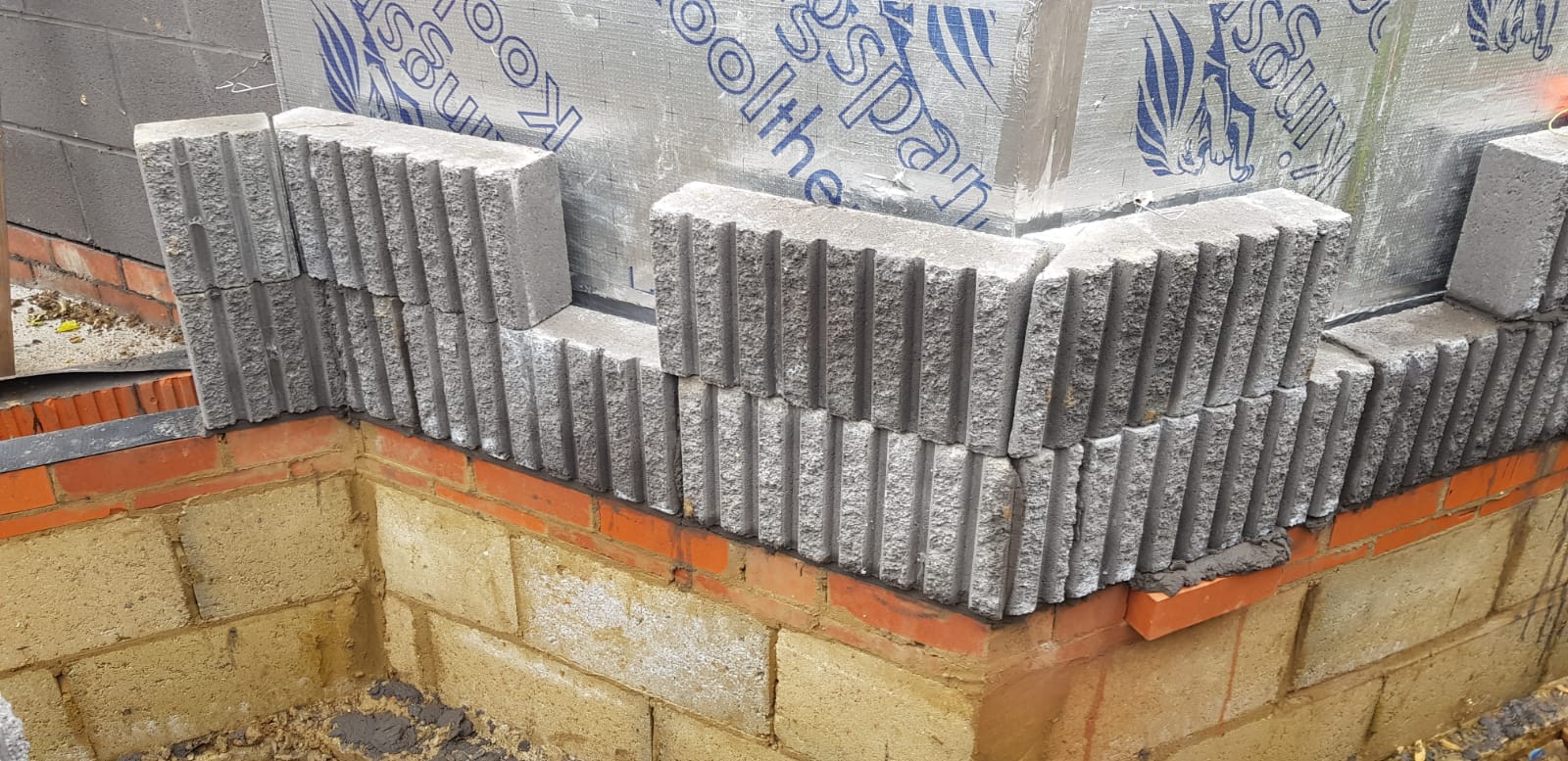 We spent a lot of time sourcing a good colour-matched mortar too, finding an ideal one from Tarmac in their Trutone range. This one was Y14, fyi. If you whizz through the slide-show below there’s a shot of two different greys mixed up, it’s amazing how different they looked against the block, Y14 just shouted out Pick Me! Never assume the mortar the builder choses ‘will do’ when you’re spending thousands on your build: get involved, get researching and get perfection.