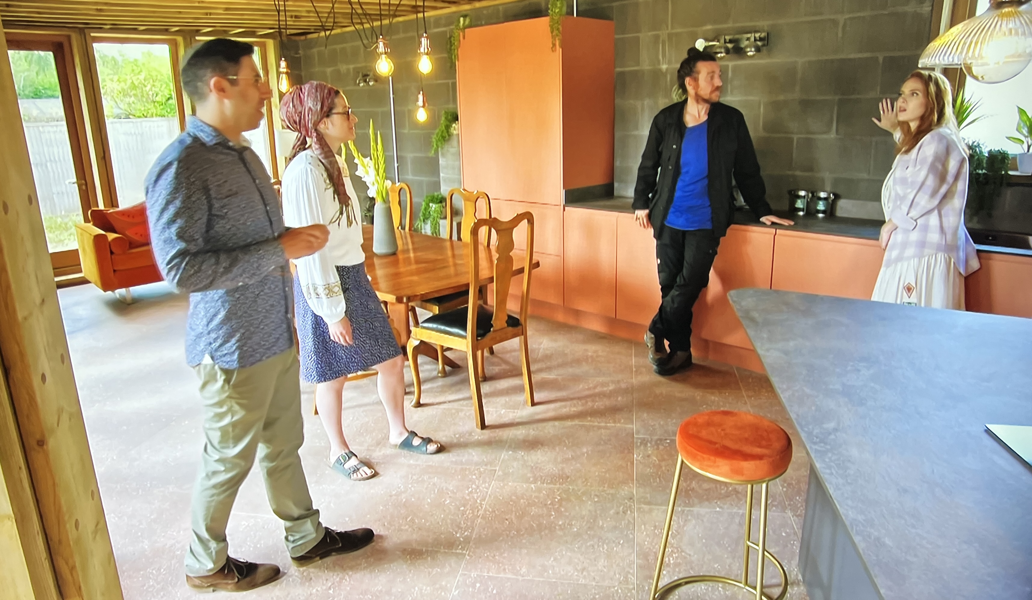 Can we just have a moment for something super practical please? Look I know Building Regs say we all have to buy a zillion quids worth of insulation to our Renos now but honestly, would we be without it? Especially as all our fuel bills are soon going to be quadrupling or whatever the latest ‘rupling is. Yehuda and Naomi’s house was absolutely freezing before this work, an uninsulated concrete 1950’s freezer box ensuring blue toes and shivering children. There’s Kingspan in the walls, under the floor and in the ceiling, there’s double glazing to every door and window, insulated floor panels under the iroko engineered board and new loft insulation. If this family don’t strip naked every time they walk through the front door, there’s no justice in the world!