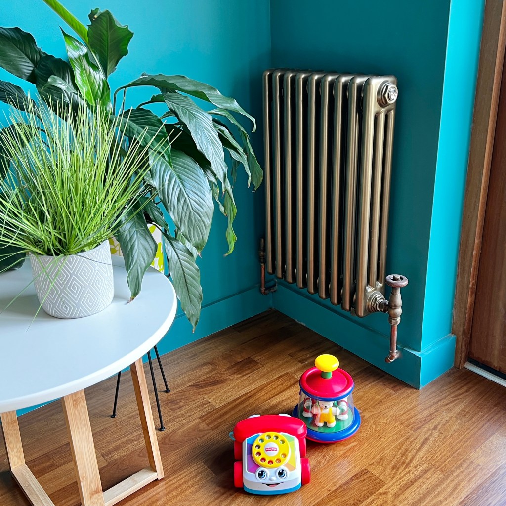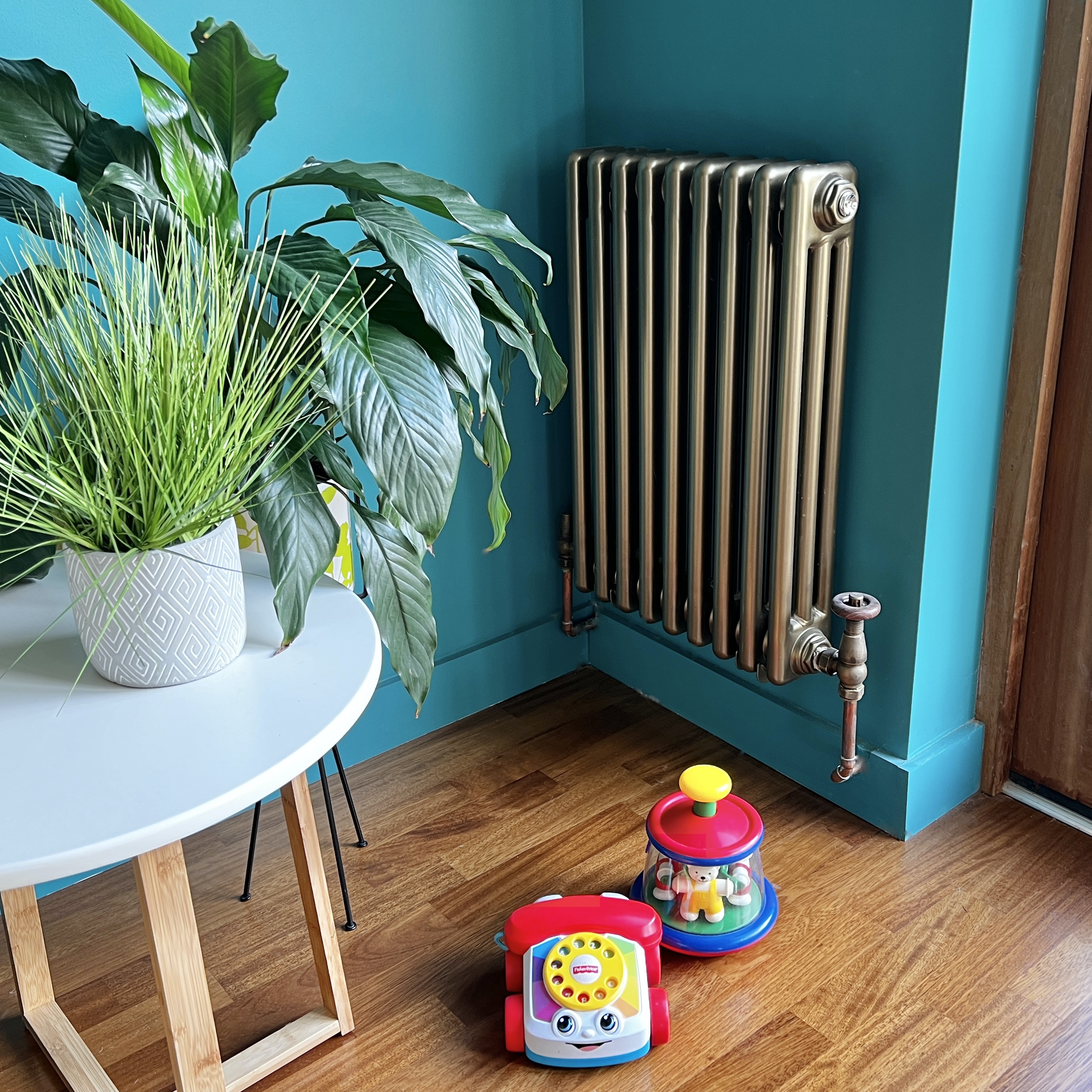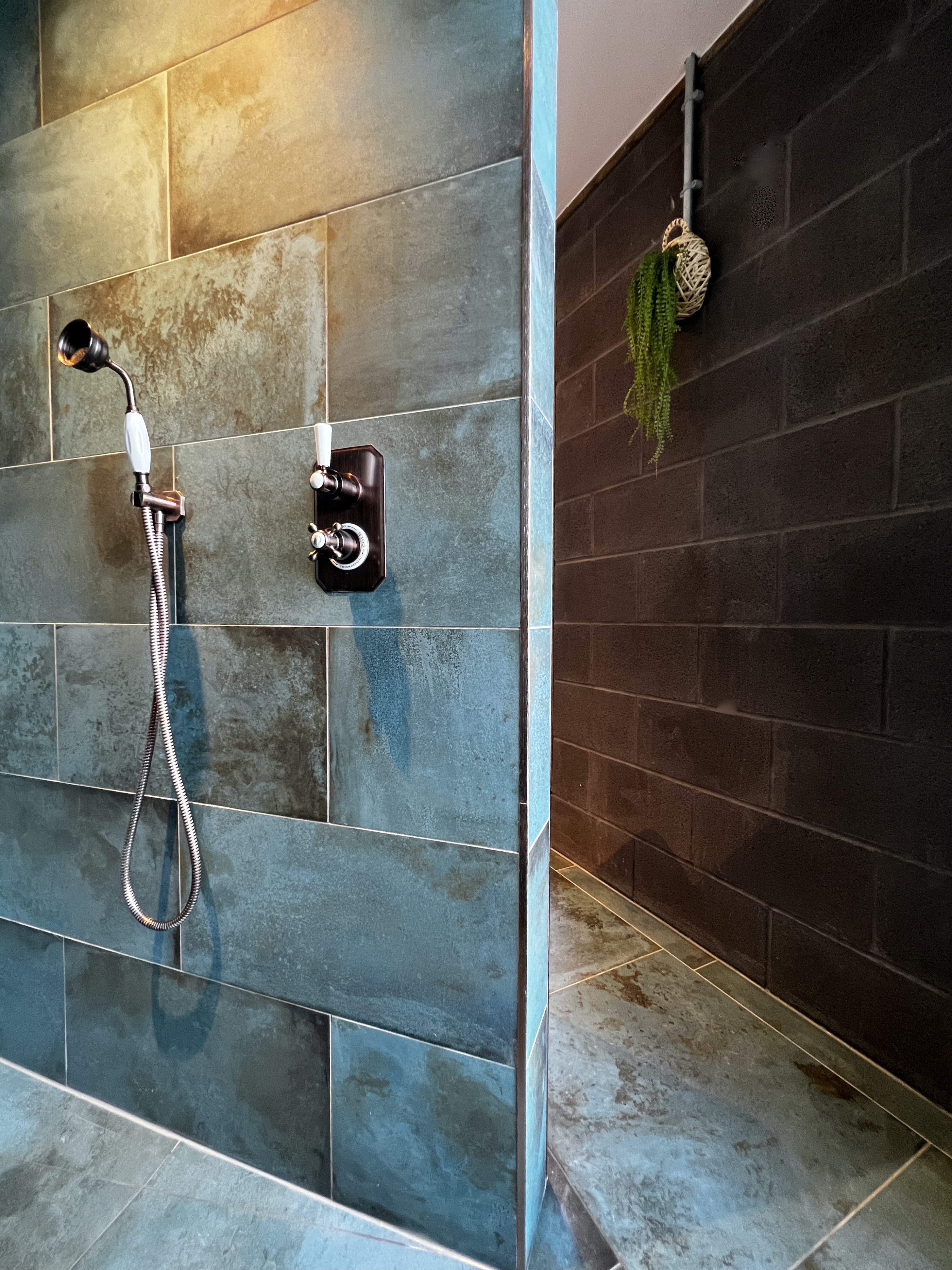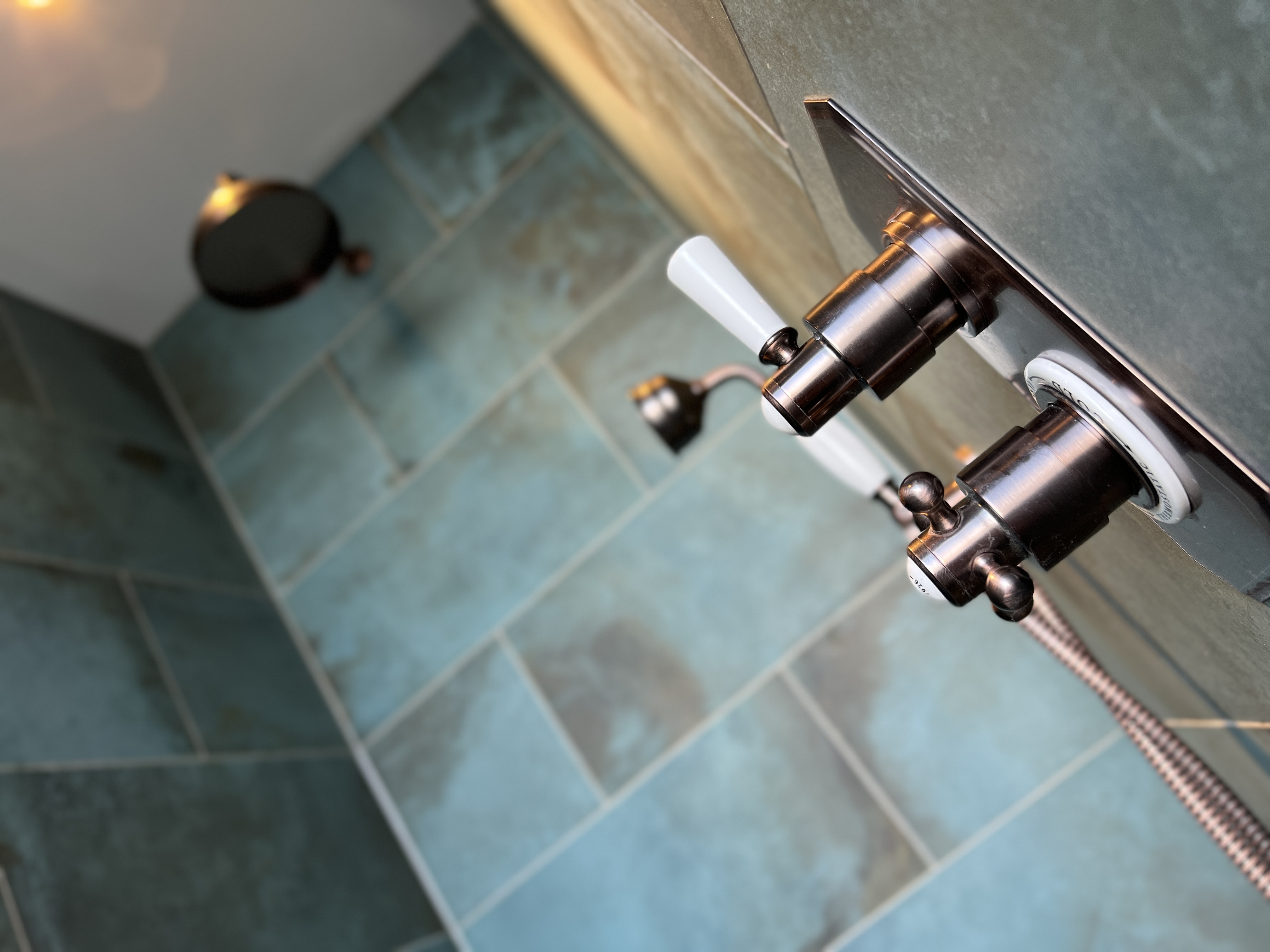 Not only did the rads wing their way to us from the Best Heating but their sister site The Big Bathroom Shop came up trumps with bronze bathroom fittings, shower and taps, a range called Milano Elizabeth. The brushed metallic finish is just lovely against the Verdigris and Carnaby Sunset tiles. Affordable design, well priced and good quality. Super job Big Bathroom Shop!