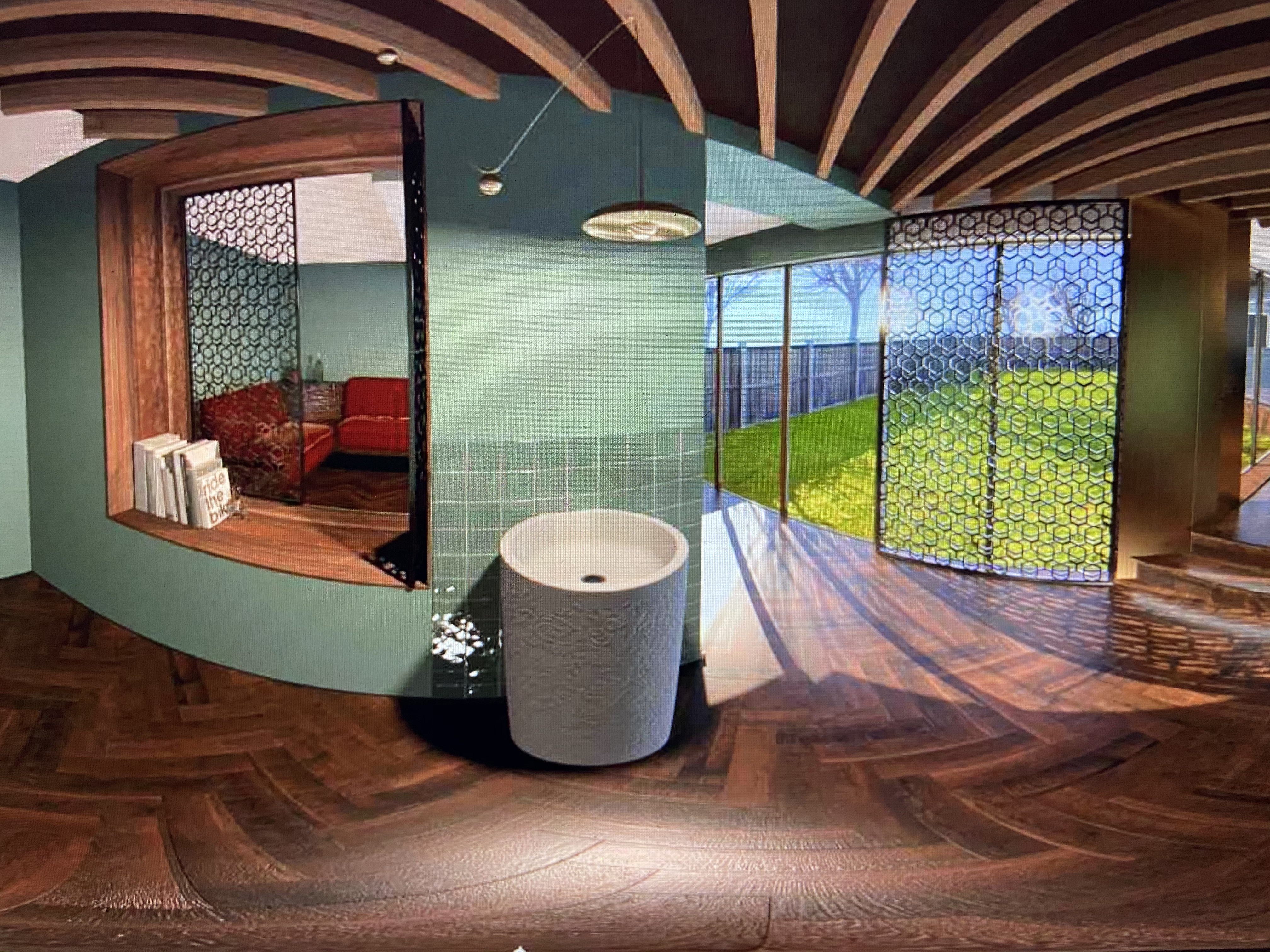 The original VR, seen below, featured lots of warm toned timber, which Yehuda and Naomi were keen to bring into the final finishes chosen. Builds are Very Expensive Things and often what is first desired as a finish can’t always be afforded when all the elements are totted up and the build is progressing, with all it’s hiccups and variations. They are inevitable. On every build.