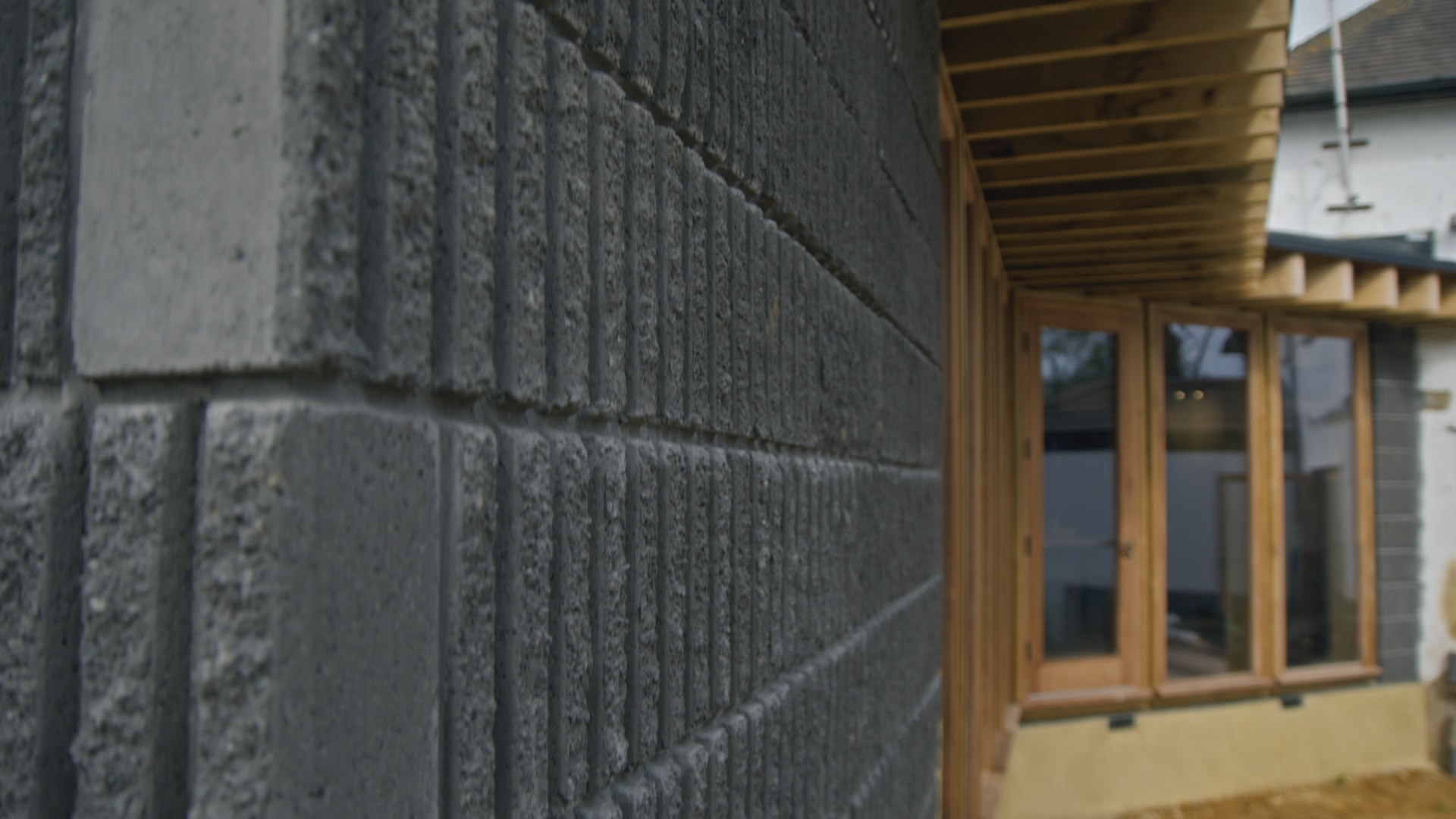 A part of me would have liked to see these fluted beauties used both inside and out as they are just so texturally interesting and visually wonderful. The compacted earth from the original VR wasn’t possible for the build, so Robert sourced these smooth and split faced blocks from a Northern Irish company called Colinwell – the ones used are called Whinstone. The brickies did a super job on the exterior, working out to full blocks all the edges of windows and doors. Often detailing like this will change the sizes of openings from what’s drawn on plans and it’s far better to be reactive and work with what you have practically if the plans haven’t been drawn up for specific measured materials.