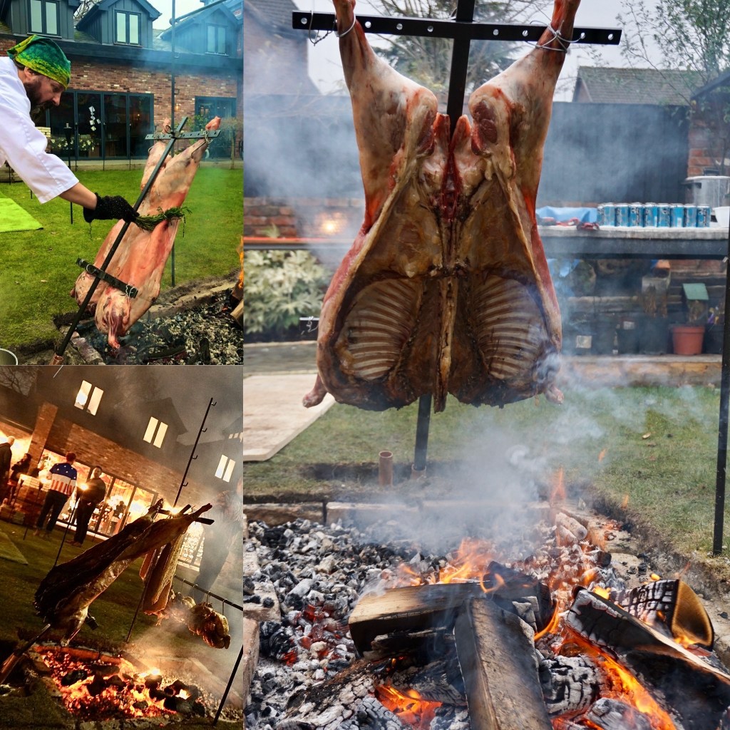 We’ve all eaten BBQ food outside and waxed lyrical about the incurable smokey flavours but unless you’ve trekked across Argentina with a cowboy, genuine Asado cooking might be a new one on you. We baste a whole lamb and cook it for hours & hours on an iron cross, suspended over red hot oak embers. Served with charred potatoes, grilled veg, salads and chimichurri. It’s BLINKIN’ DELICIOUS! Served out in the garden, in shorts or in coats. Think sticky fingers and juicy chins 🙂