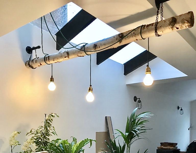Specification of flooring to hallway, kitchen & extension; wallpapering to cloakroom, lighting design and specification, layout design & decor to bathroom, design and installation of scaffold shelving and over island birch lighting feature.